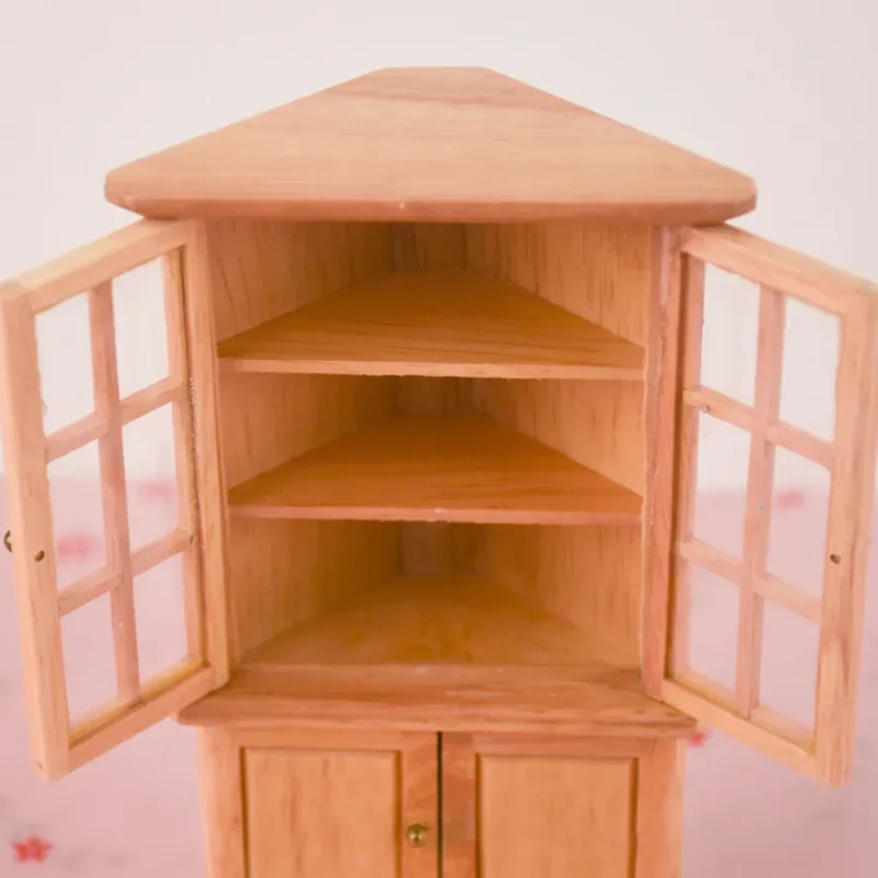 Add charm to your dollhouse corners with this pine corner hutch featuring glass-paned doors and elegant details! Perfect for displaying miniature china and creating cozy kitchen scenes in 1:12 scale. Makes excellent use of corner spaces! 🏠✨